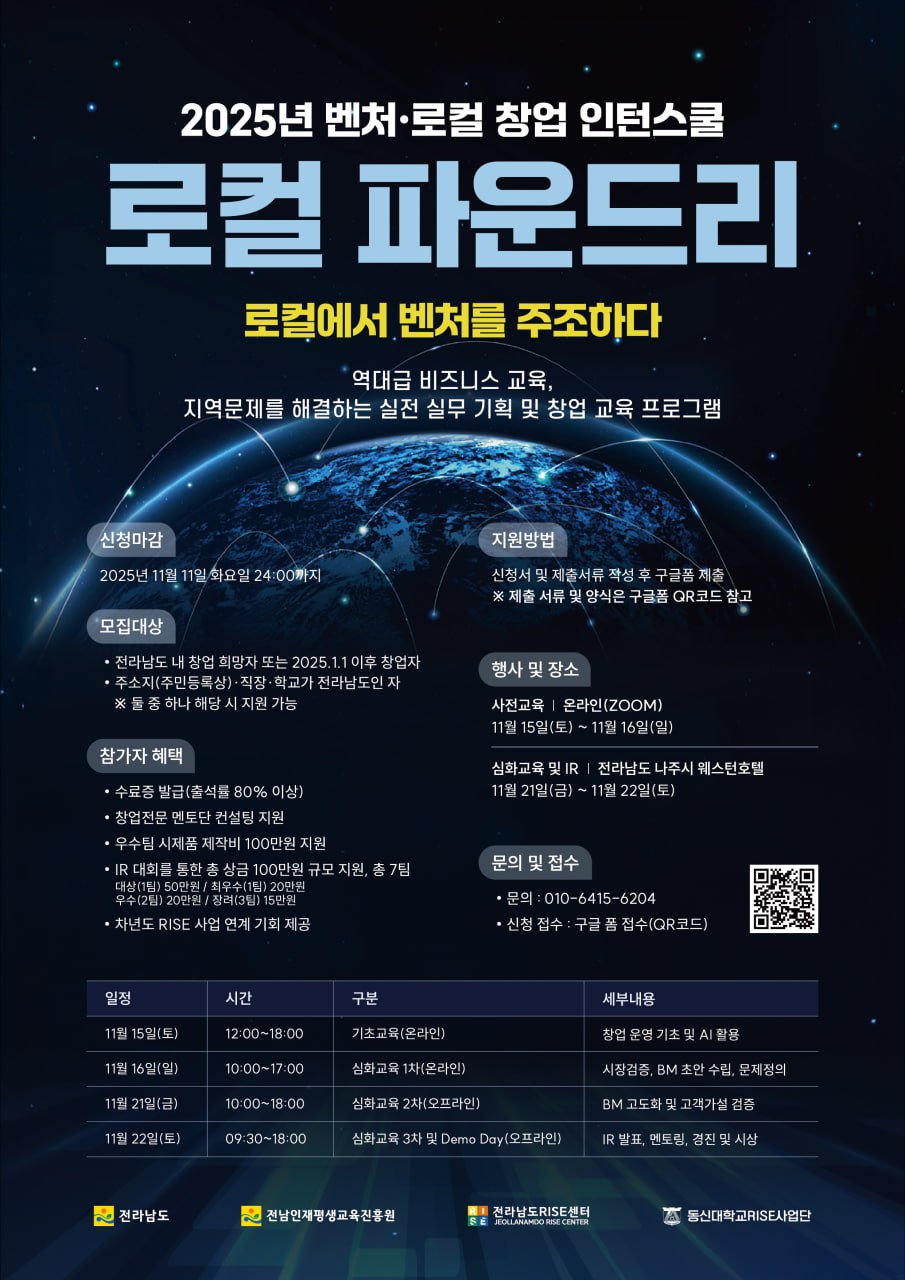 교육 [시제품 제작비 100만원 지원] 2025 전남 벤처·로컬 창업 인턴스쿨 로컬 파운드리