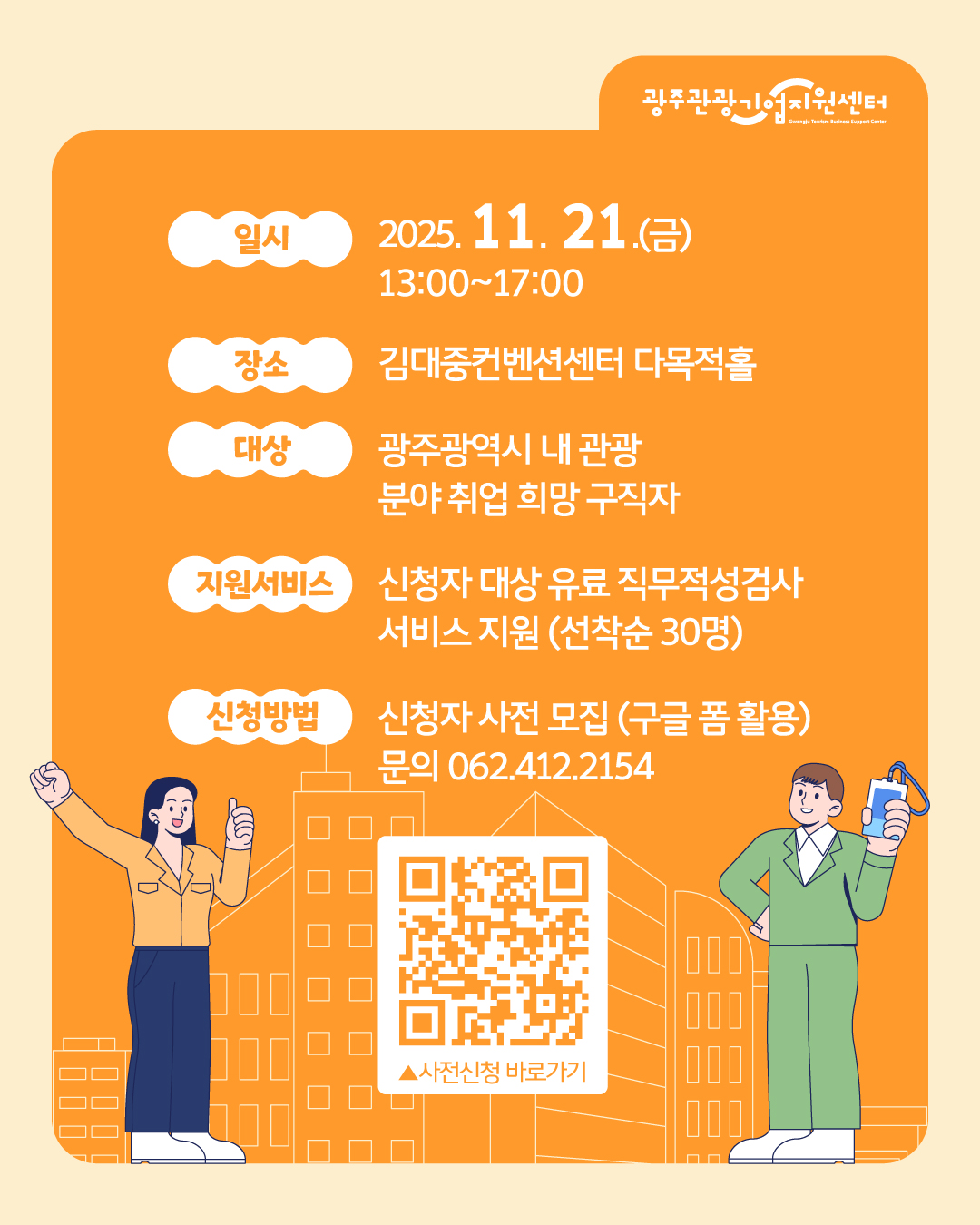 2025 찾아가는 광주 관광 일자리 상담소 사전 접수 시 선착순 30명 유료 직무적성검사 서비스 지원해드립니다