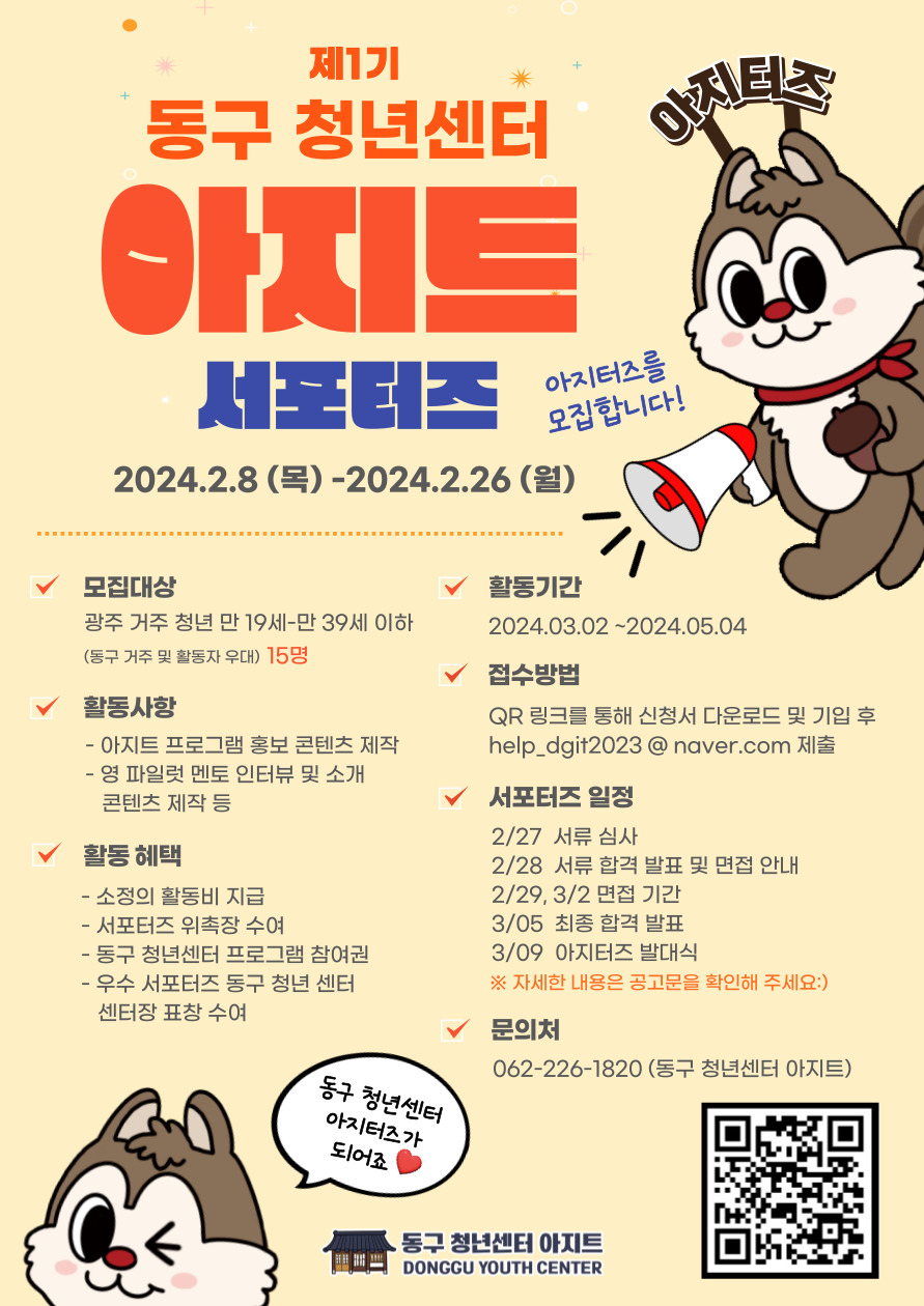 제1기 동구 청년센터 아지트 서포터즈 “아지터즈”를 모집합니다🐿️🫶🏻🫶🏻