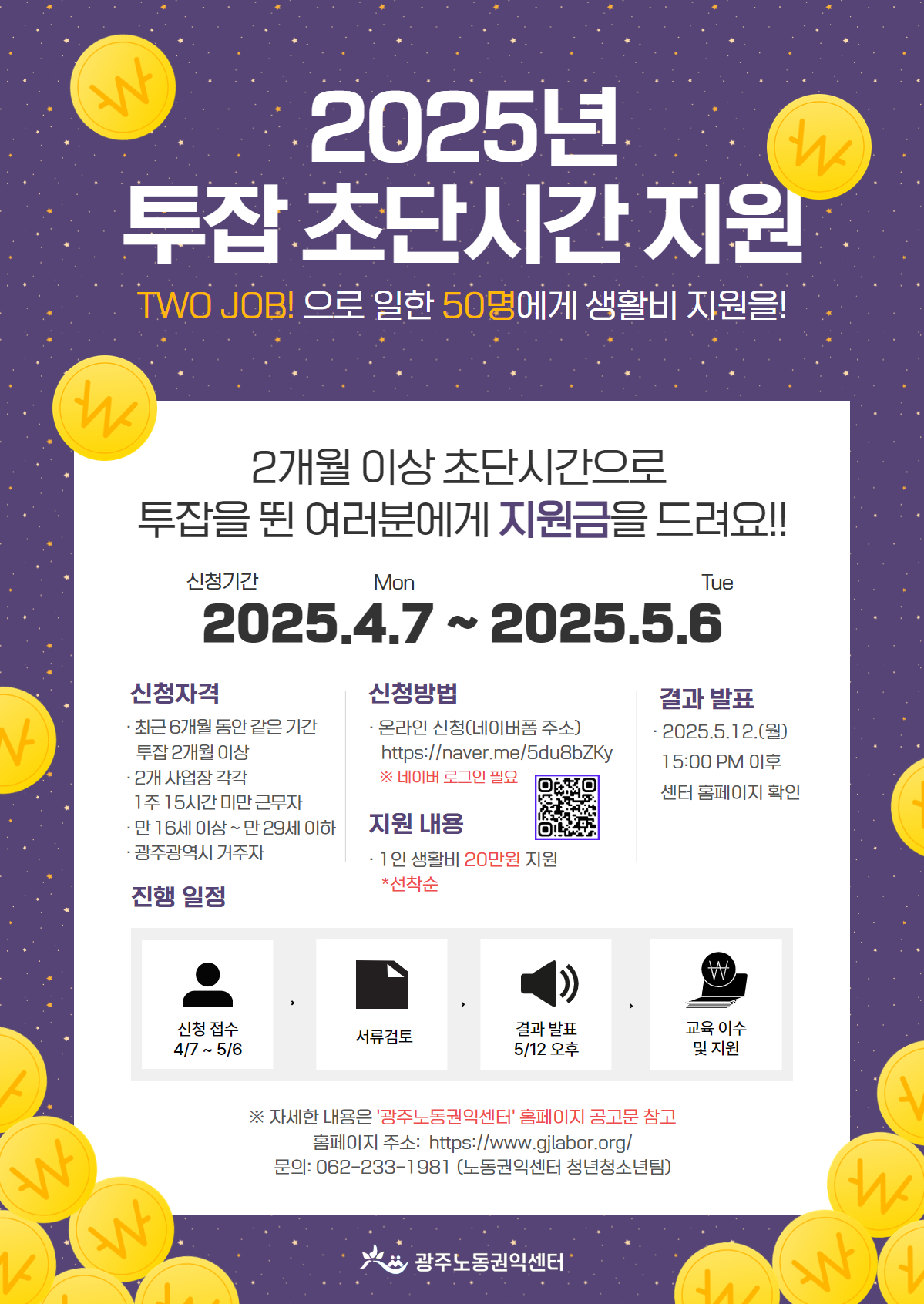 광주노동권익센터에서 광주지역 초단시간 청년·청소년 노동자 분들께 생활비를 지원해 드립니다!