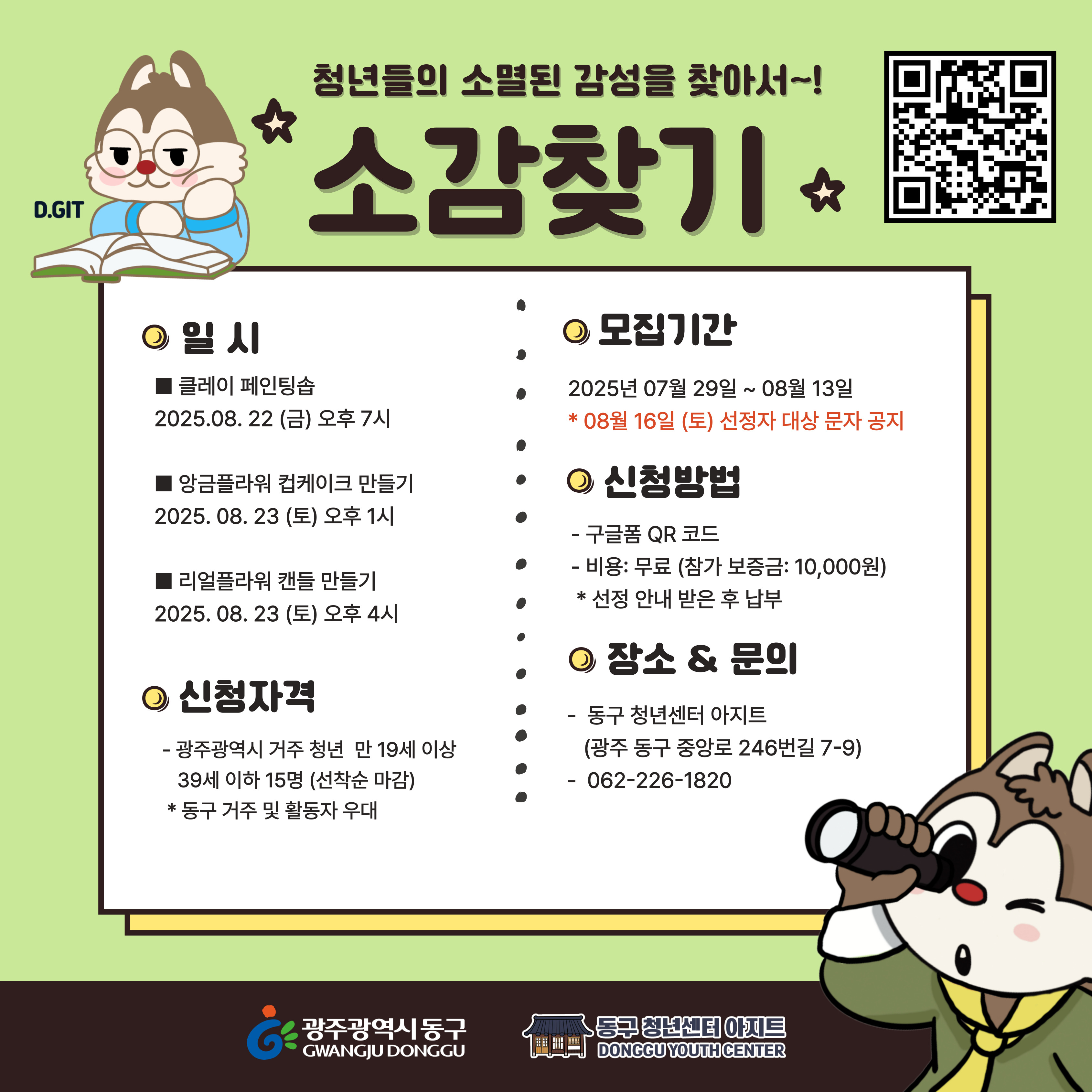 ◆ 문의 : 카카오톡 채널 [광주동구청년센터 아지트] 또는 ☎) 062-226-1820