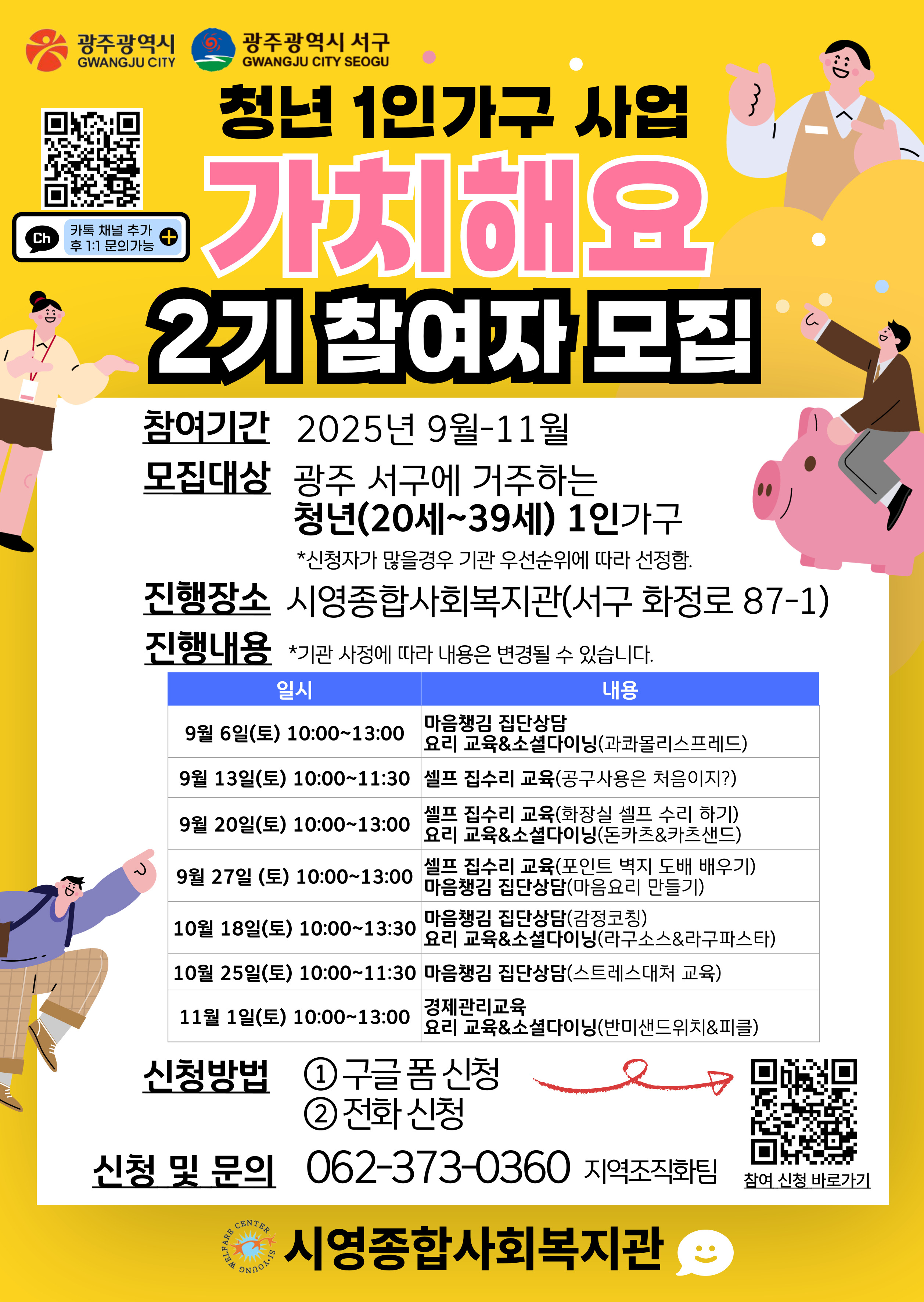 프로그램 [시영종합사회복지관] 서구 청년 1인가구 프로그램 '가치해요' 2기 참여자 모집
