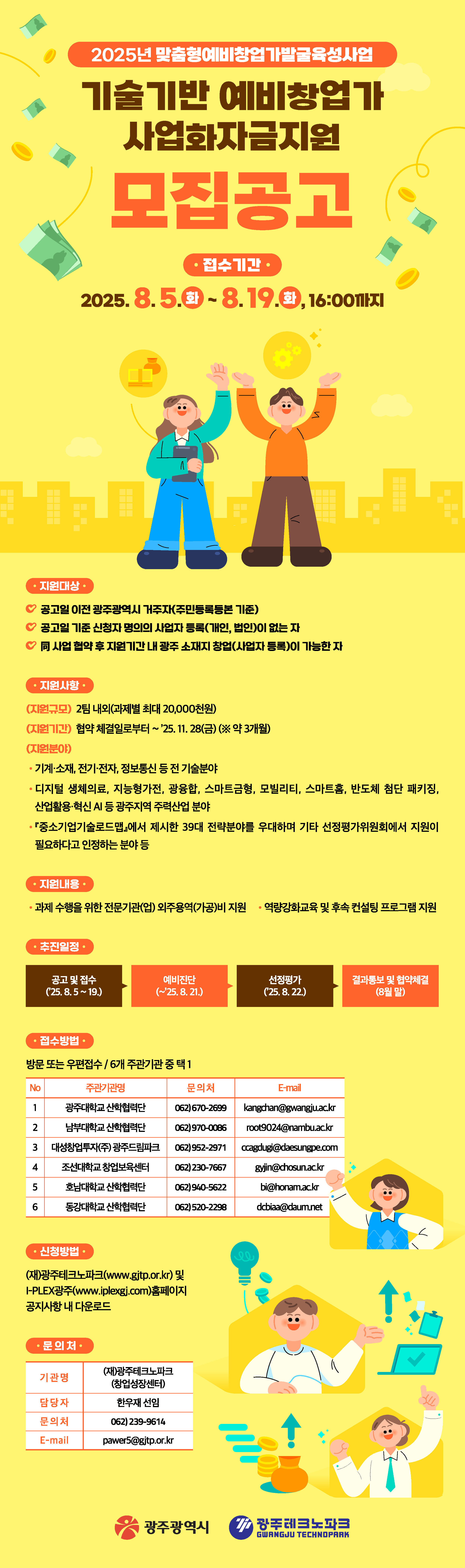 2025년 맞춤형예비창업가발굴육성사업 기술기반 예비창업가 사업화자금지원 모집공고