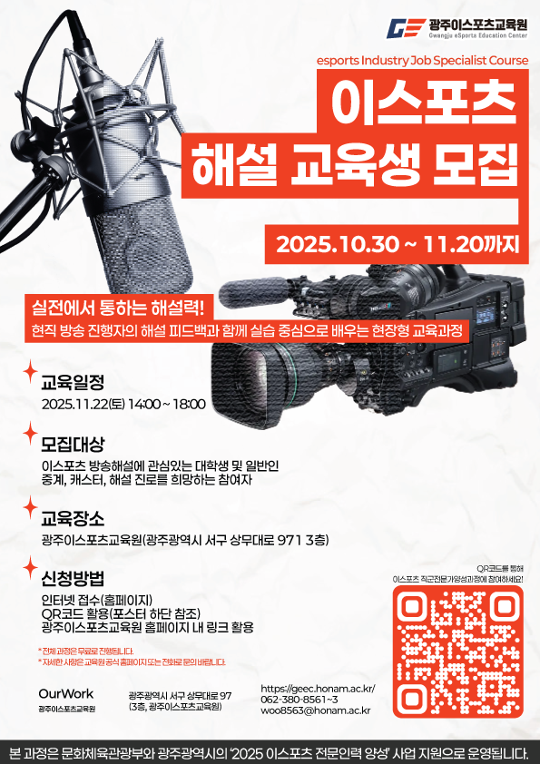 교육 나의 목소리로 경기를 전하다! – 이스포츠 방송해설 교육생 모집