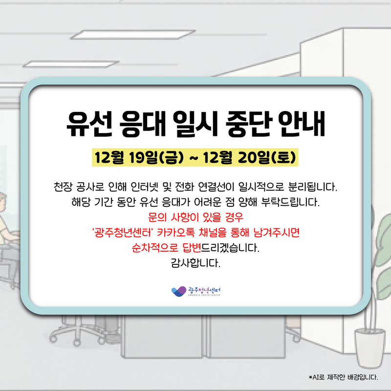 공지 [안내] 광주청년센터 내부 공사로 인한 휴관 및 유선응대 일시 중단 안내
