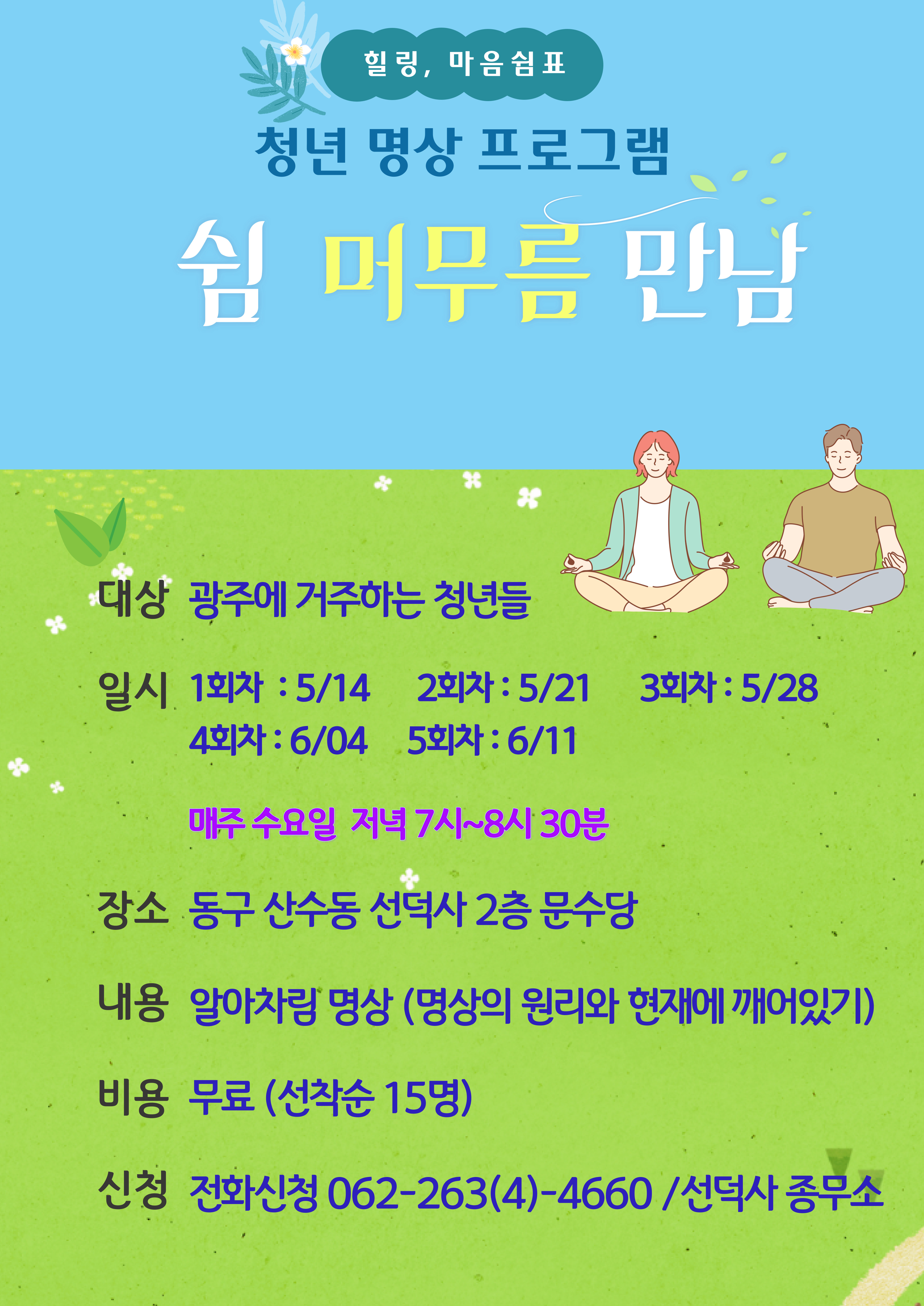 평소, 명상에 관심이 있으셨던 분들은 많은 참여 부탁드립니다.
