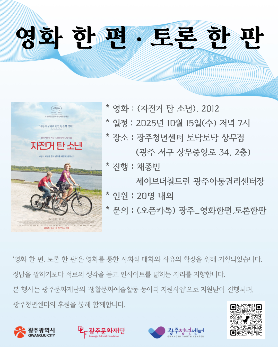 행사 [영화 한 편, 토론 한 판] 10/15(수) <자전거 탄 소년> 영화토론회