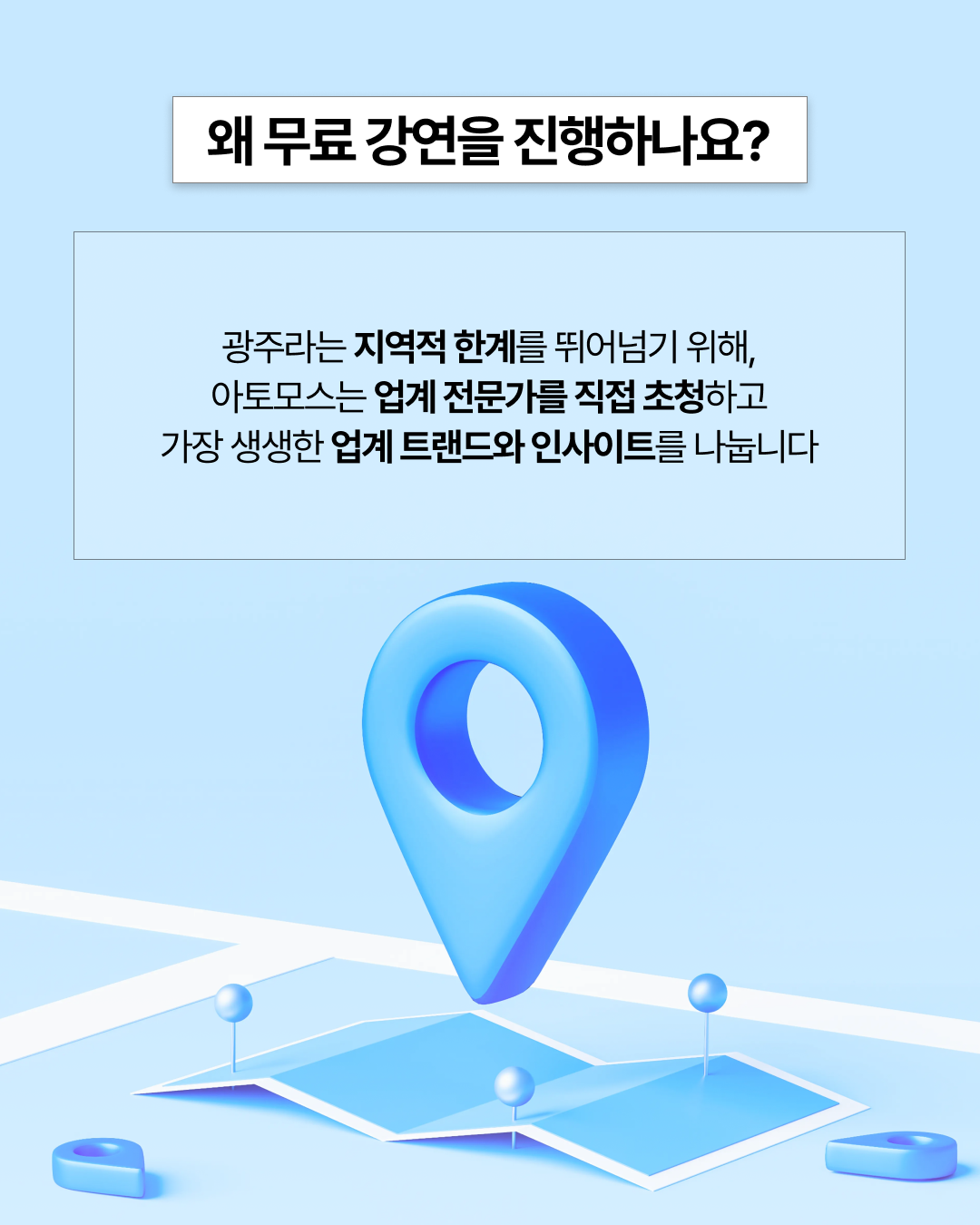 광주라는 지역적 한계를 뛰어넘기 위해, 아토모스에서 업계 전문가를 직접 초청해서 가장 생생한 업계 트랜드와 인사이트를 나누는 시간 A-IN DAY에 여러분을 초대합니다!